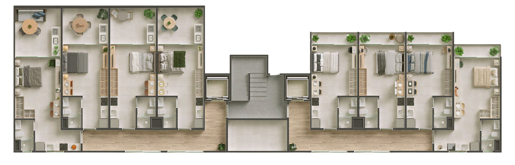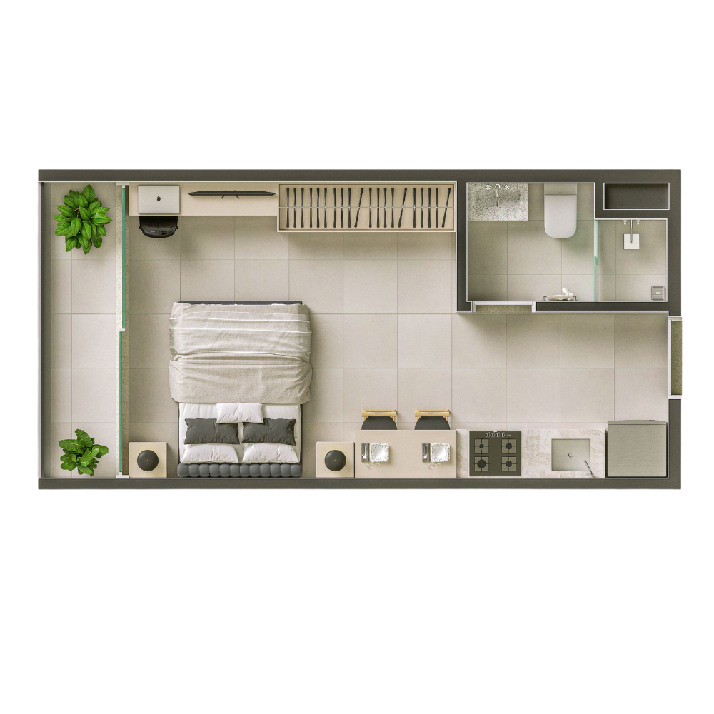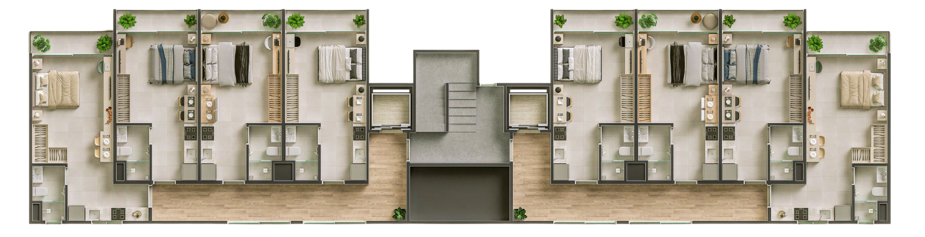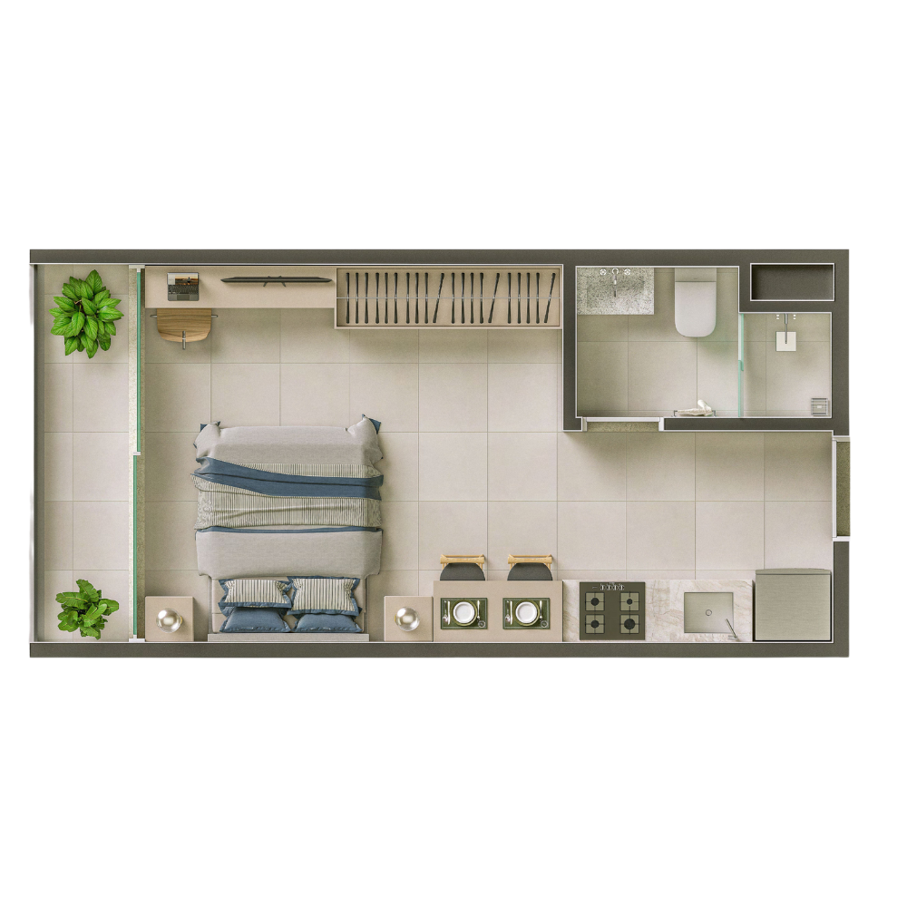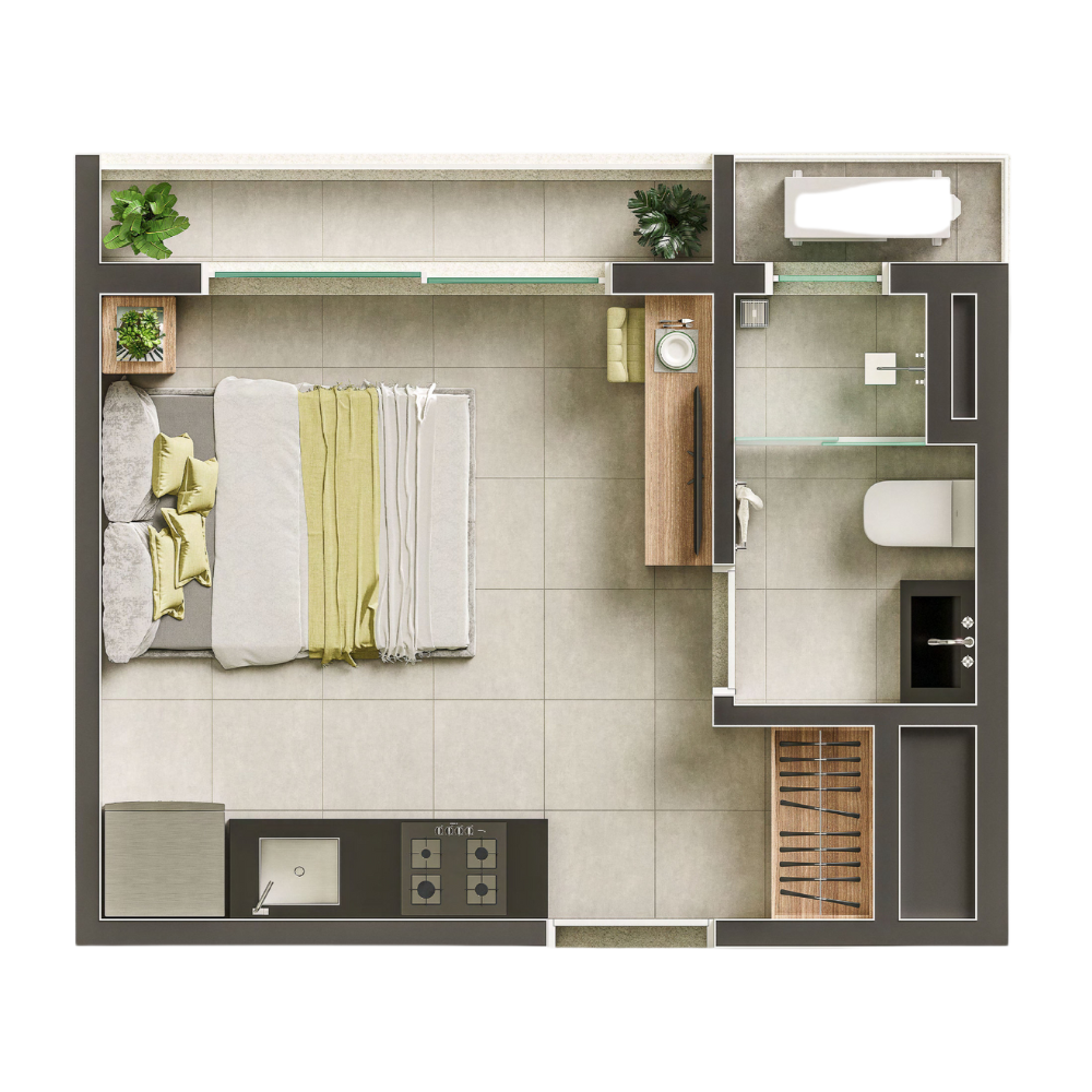 Todas perspectivas e imagens artísticas são meramente ilustrativas. Todas informações sobre o empreendimento terão validade somente de acordo com contrato de compra e venda e memorial descritivo, devidamente assinados pelo comprador. As áreas comuns serão entregues equipadas e decoradas, conforme memorial descritivo. Os móveis, equipamentos e utensílios utilizados nas perspectivas ilustradas são mera sugestão de decoração e não fazem parte do Contrato de Compra e Venda. O projeto poderá sofrer ajustes e alterações decorrentes do desenvolvimento dos projetos executivos de estrutura, arquitetura e instalações.