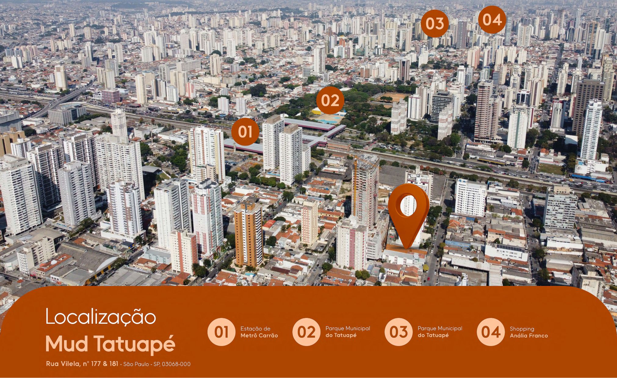 O empreendimento Mud Tatuapé está localizado no bairro Tatuapé, uma das regiões mais valorizadas e tradicionais da Zona Leste de São Paulo. Com fácil acesso a importantes vias como a Radial Leste e a Marginal Tietê, o local oferece conveniência tanto para deslocamentos rápidos pela cidade quanto para o uso de transporte público, incluindo a proximidade com estações de metrô.